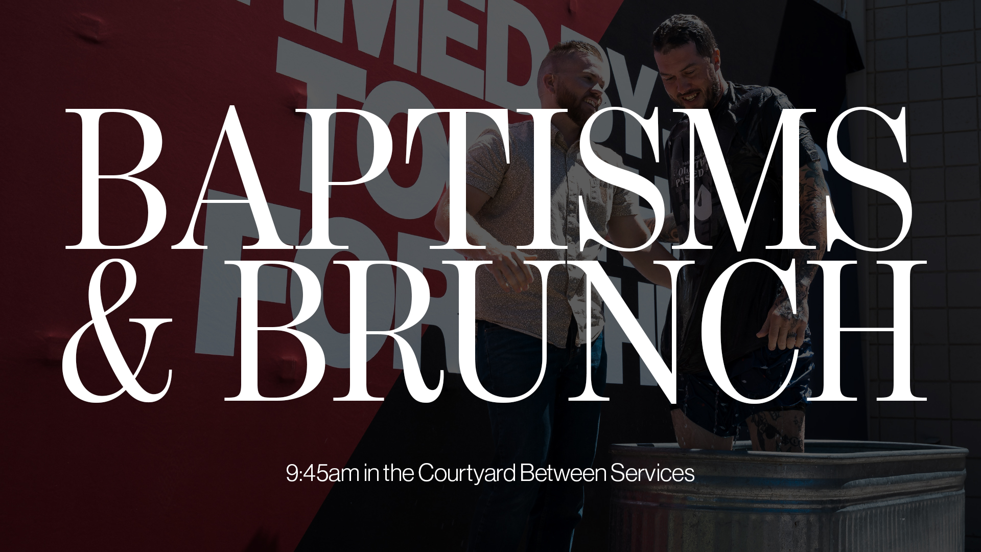 Between the 2 services, at 9:45am, we will be celebrating baptisms in the courtyard. Stick around for free brunch!