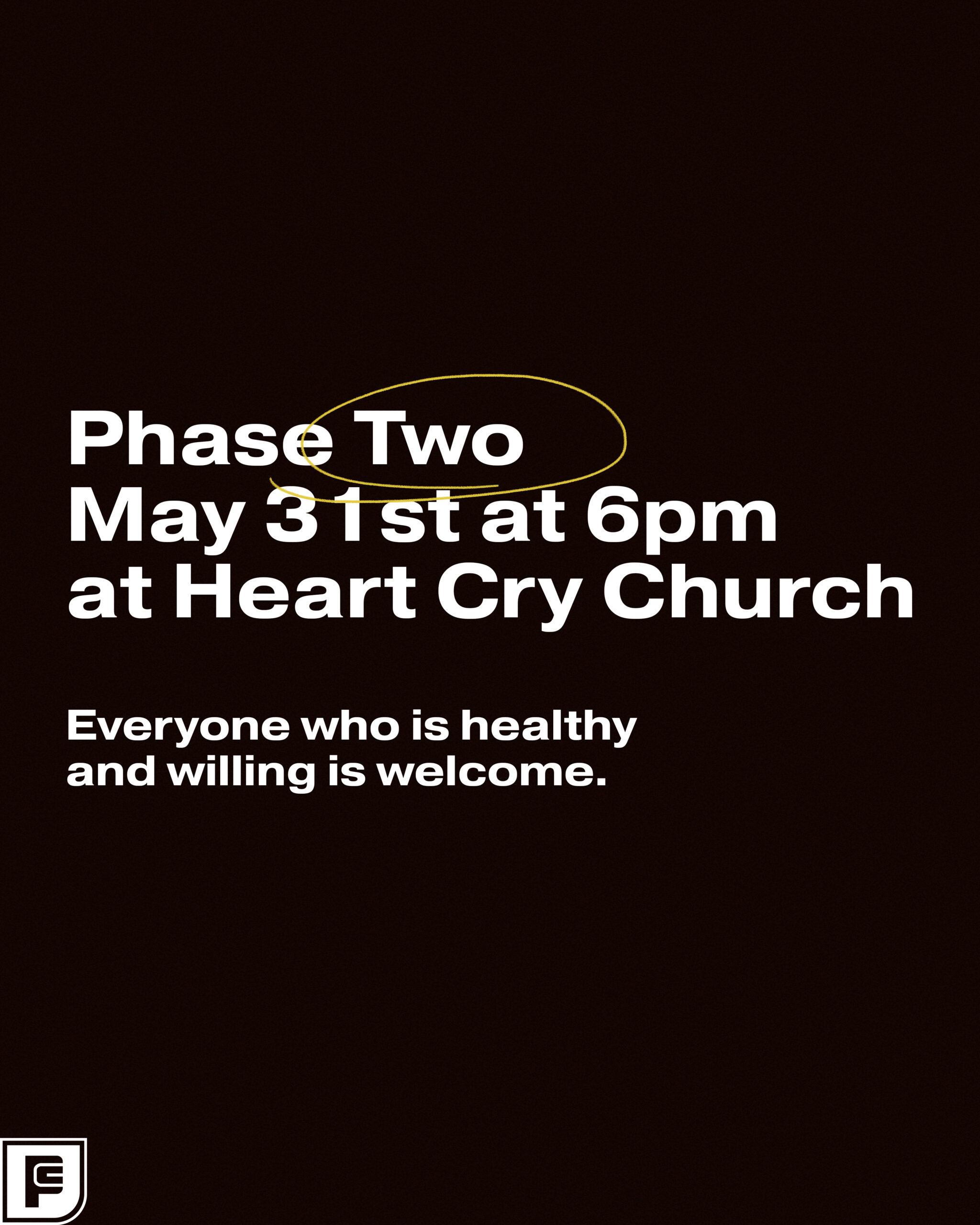 On May 31st, we are inviting everyone who is willing and healthy to join us at Heart Cry Church at 6pm.